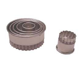 Cutters are made of Heavy Duty Tinned Steel Cutter are deeply fluted to ensure visible scallops on pastries Reinforced, will not warp or bend Cutters are also sold separately6 Pieces ranging in size from 13 1/8