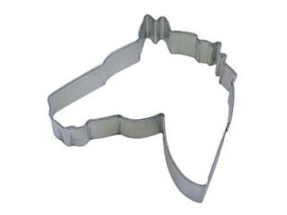 4.5" Horse Head cookie cutter constructed of tinplate steel. Hand wash and towel dry.