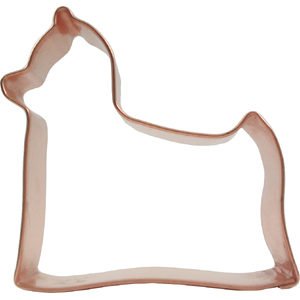 Dog Cookie Cutter (Yorkshire Terrier) measures 3-3/4 x 3-1/4 inches. They were developed in the 1800s in England. Defining features are its small size and its silky blue and tan coats.Dog Cookie Cutter (Yorkshire Terrier) will be 1-1/8 inches deep after one side of the copper is tightly folded over for safety and stability. Our sturdy, copper cookie cutters are shaped by hand and soldered together for a permanent old fashioned hold. Handmade copper cookie cutters may vary in size and shape.Click here to see more of our Dog Cookie Cutters.Dog Cookie Cutter (Yorkie)